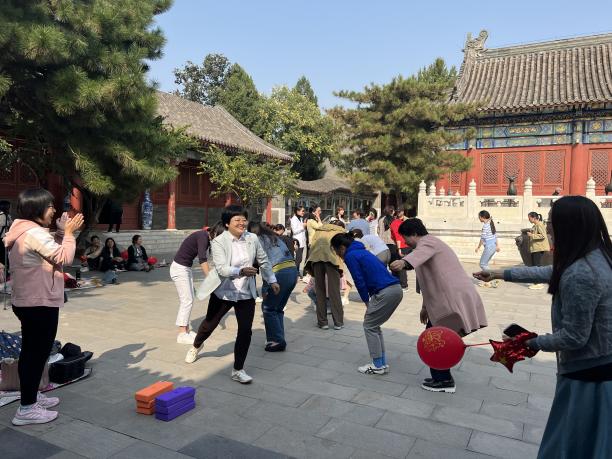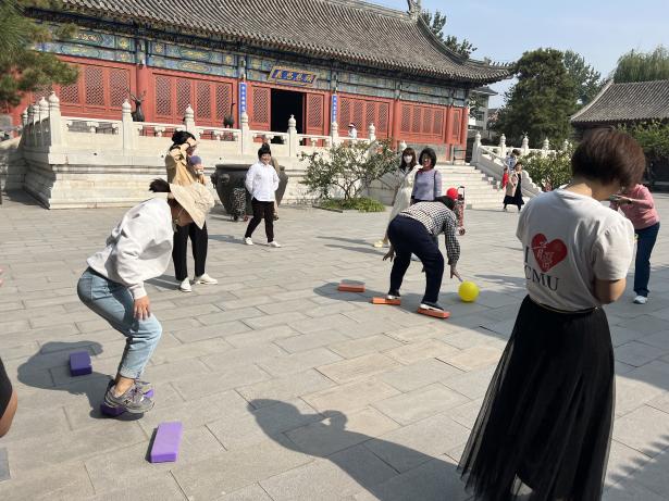 在游戏环节,“林黛玉进贾府”、“宝钗‘铺’蝶”、“元妃省亲”、“王熙凤筹款”,四个环节中,各组教师踊跃参加,通过小组竞赛、团队协作的方式,在活动中了解传统文化的魅力。在“林黛玉进贾府”环节中,老师们挑战古代走路姿势,体会古代礼教文化;在“元妃省亲”环节中,老师们团结一致,步履稳健,发挥集体智慧;在“宝钗‘铺’蝶”环节中,老师们俯身铺砖,身影矫健;在“王熙凤筹款”环节中,团队老师接龙方式,膝盖夹钱币,精准投入“钱口袋”。每个环节获胜团队赢得奖励,所有老师们在游戏中增进交流,收获团结,更赢得欢乐。