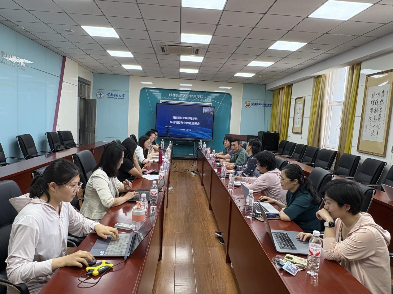为深化护理学科人文素养建设,提升师生科研伦理意识与职业精神内涵,2025年6月17日,我院以“护理的职业道德与自我修养”为主题,召开科研项目年中检查宣讲会。会议采用线上线下结合形式,学院师生及人文学院教师代表参会,会议由副院长景丽伟主持。