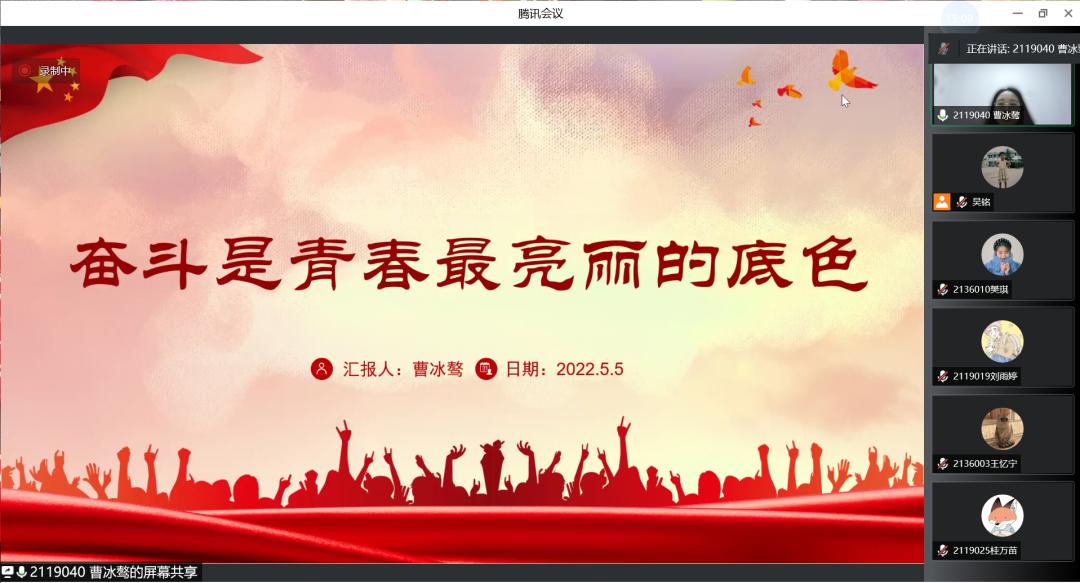 生活部王忆宁同学梳理了共产党、共青团的发展脉络史,同时着重表达了此次党史团史学习的收获和感悟。“我们青年要振奋起来,行动起来,笃行不怠,以青春之我、奋斗之我,担时代之责,做新征程的奋进者、开拓者、奉献者。”